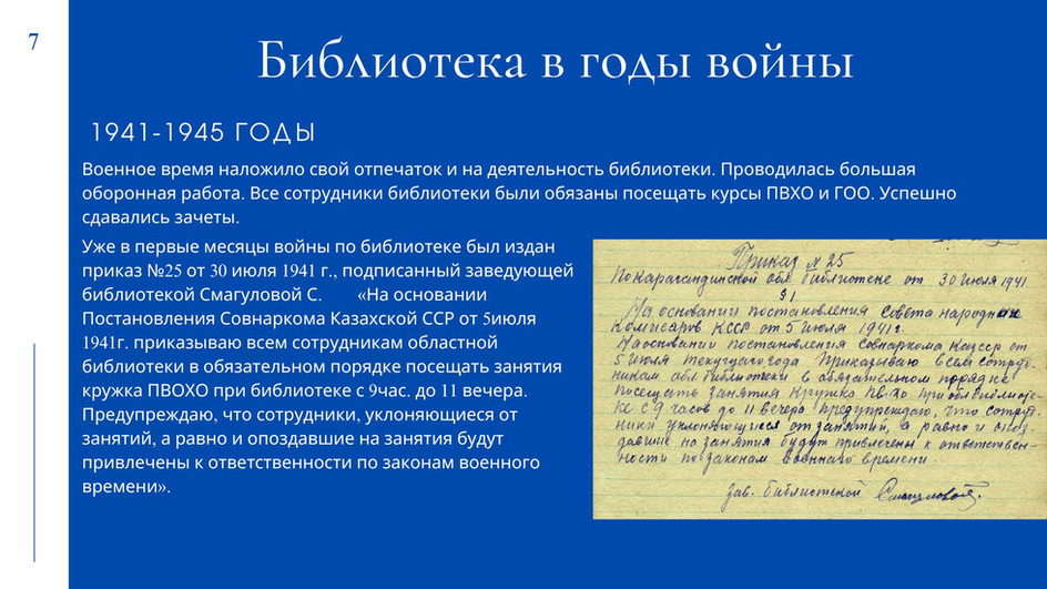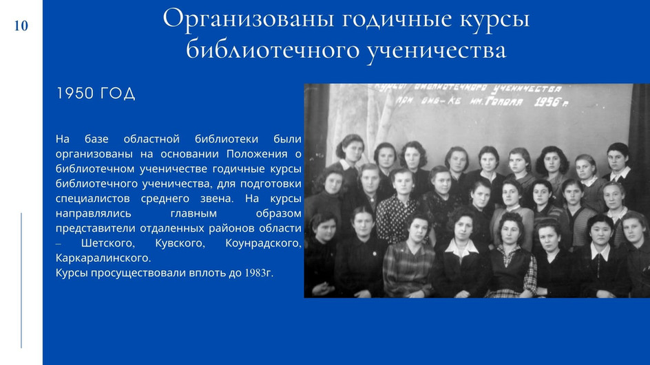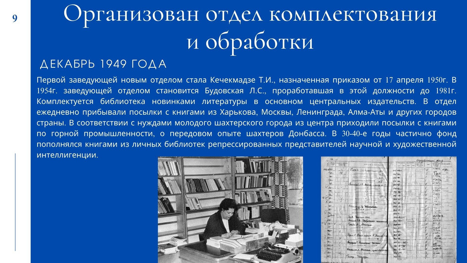 У вас будет уникальная возможность пройтись по страницам истории библиотеки с 1934г. года по настоящее время. В течение года мы будем рассказывать о самых значимых и ярких моментах из жизни библиотеки за эти годы и о событиях настоящего времени, о людях, внесших неоценимый вклад в развитие нашей библиотеки.