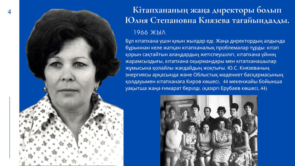 Сіздерде 1934 жылдан бастап қазіргі уақытқа дейін кітапхана тарихының беттерімен танысудың бірегей мүмкіндік болады.